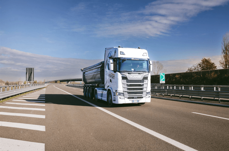 Servizio di trasporto conto terzi con un parco mezzi moderno e controllato.